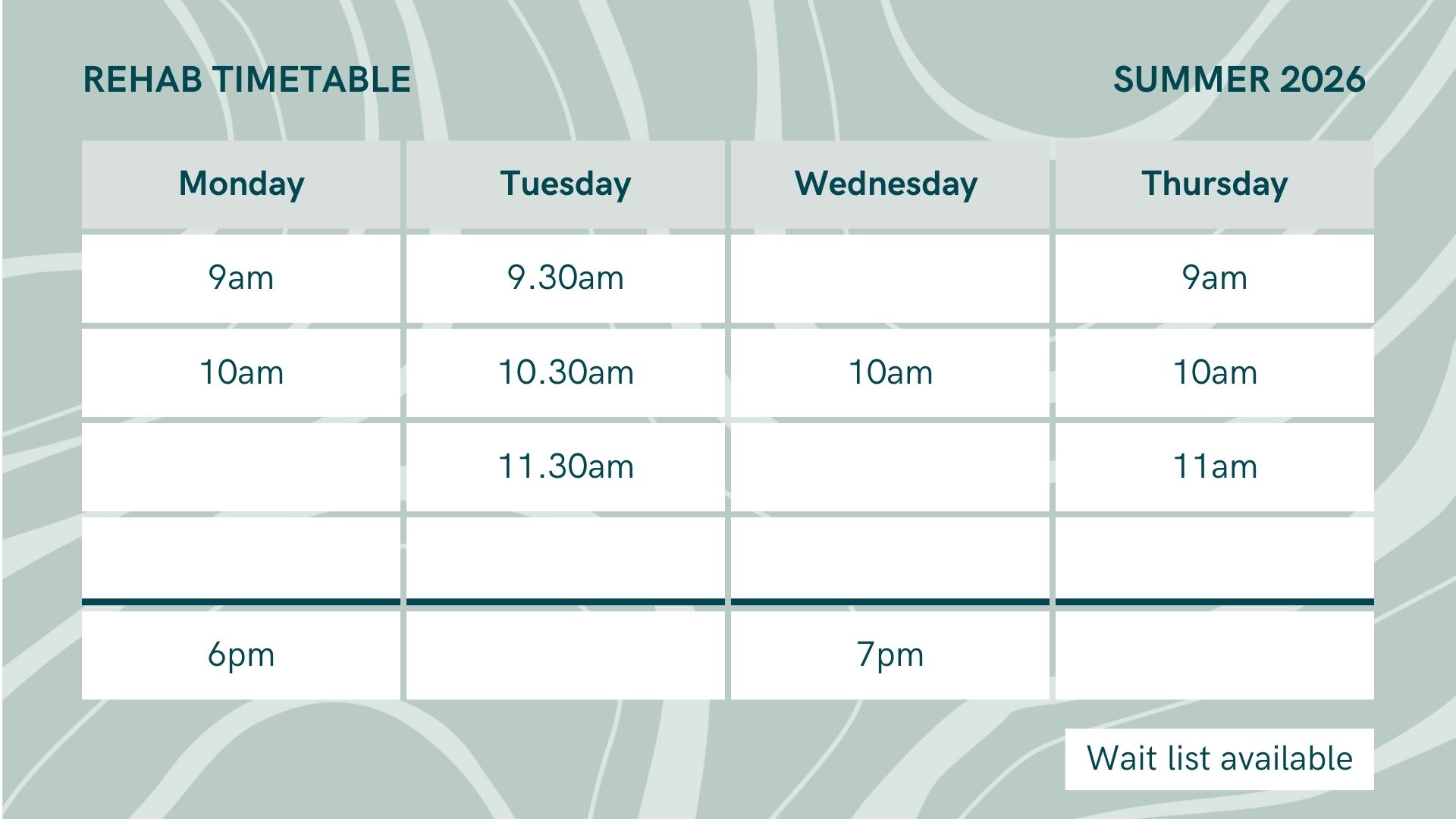 10 x Rehab Classes